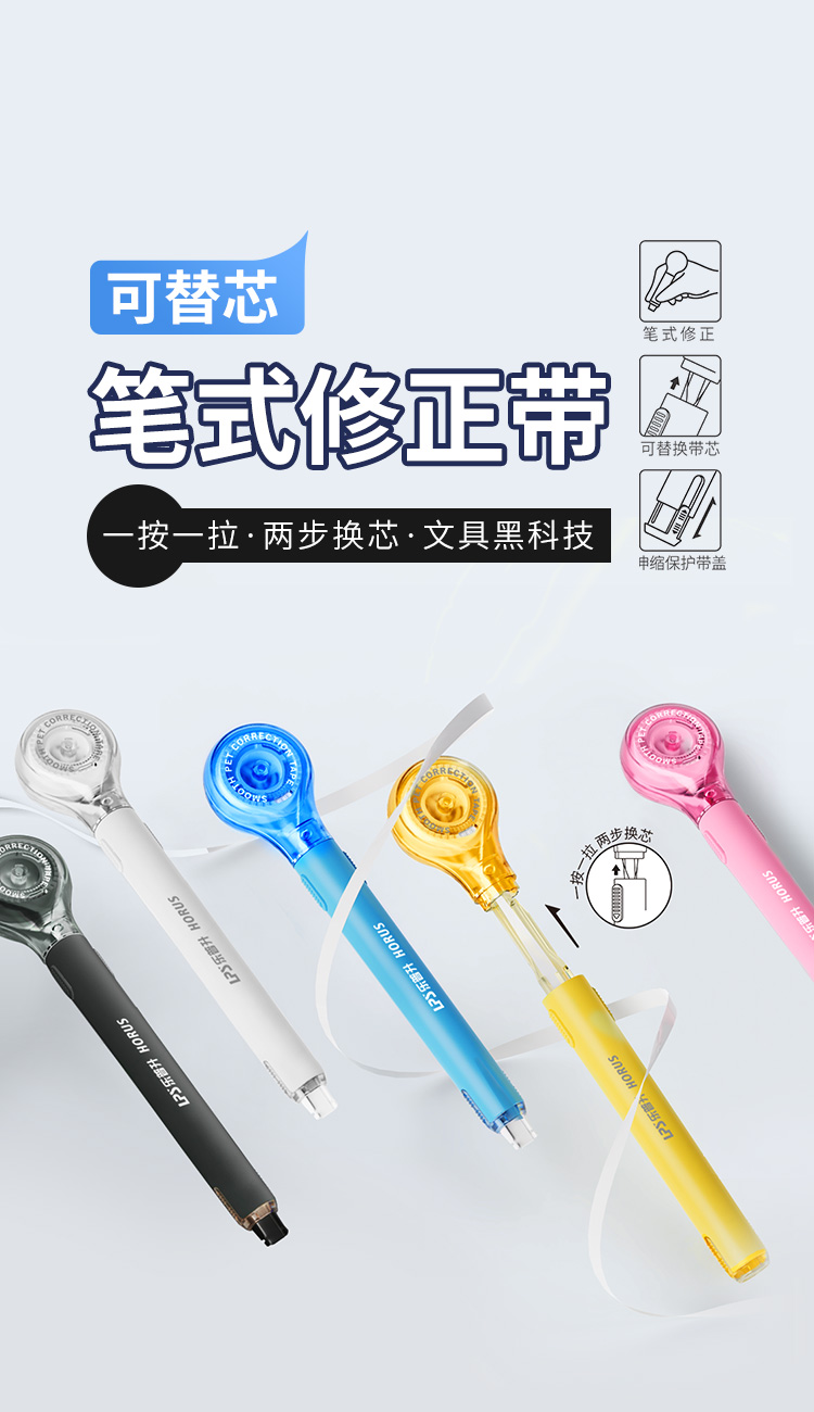 涵蓋修正帶系列、書寫工具系列、益智創(chuàng)意系列、紙品系列等多品類